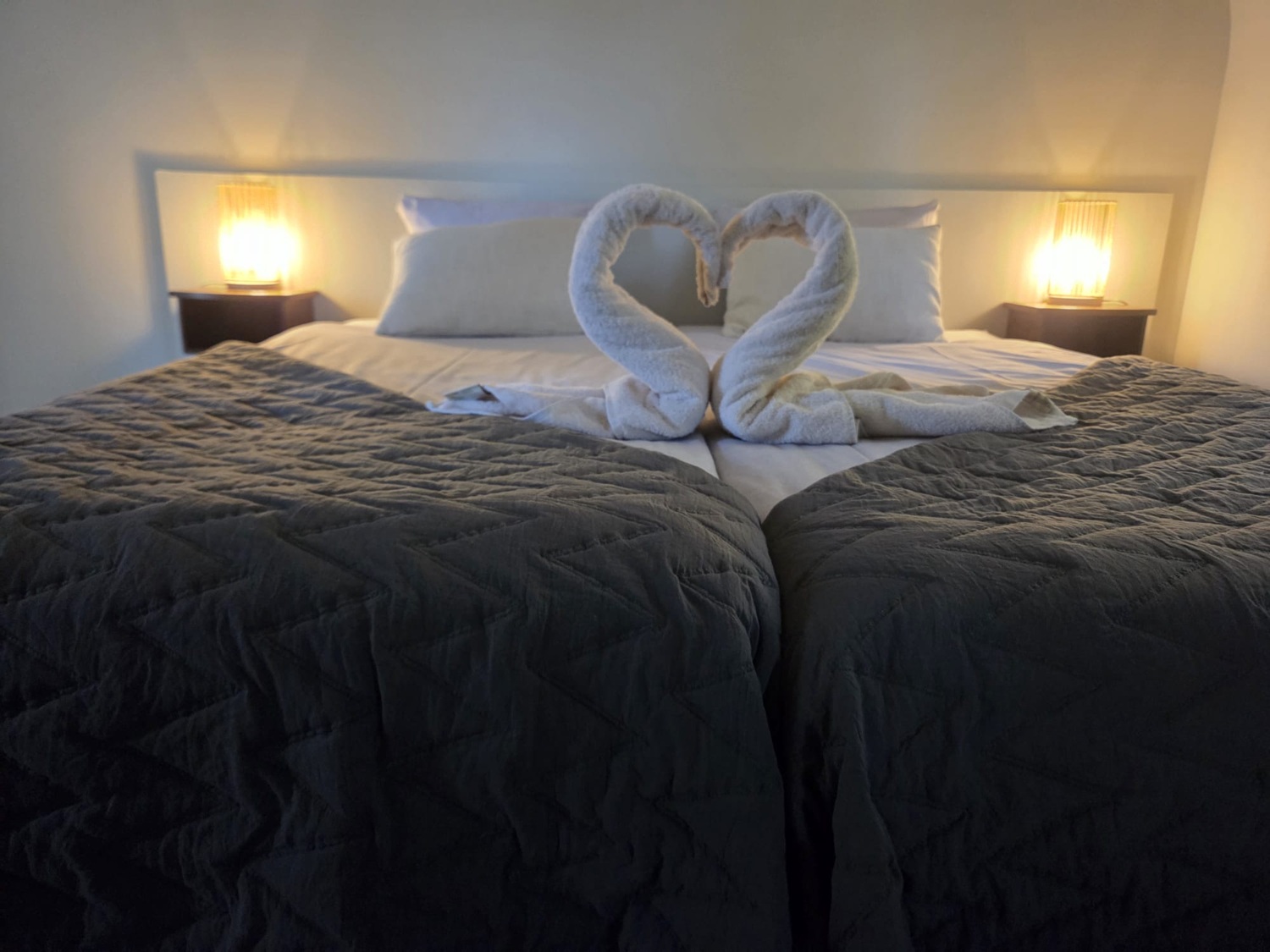 - 1 kamer geschikt voor minder-validen met 2 enkele bedden (90 x 200cm).